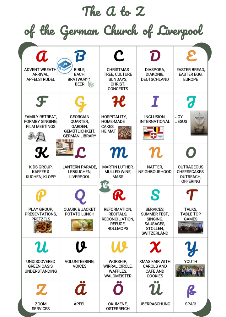 The German Church of Liverpool comprises of Merseyside, the Wirral and adjacent parts of North Wales and Cheshire. We belong to the Pastoral Region (PAB) North England & East Midlands and are looked after by the pastor Christa Hunzinger.